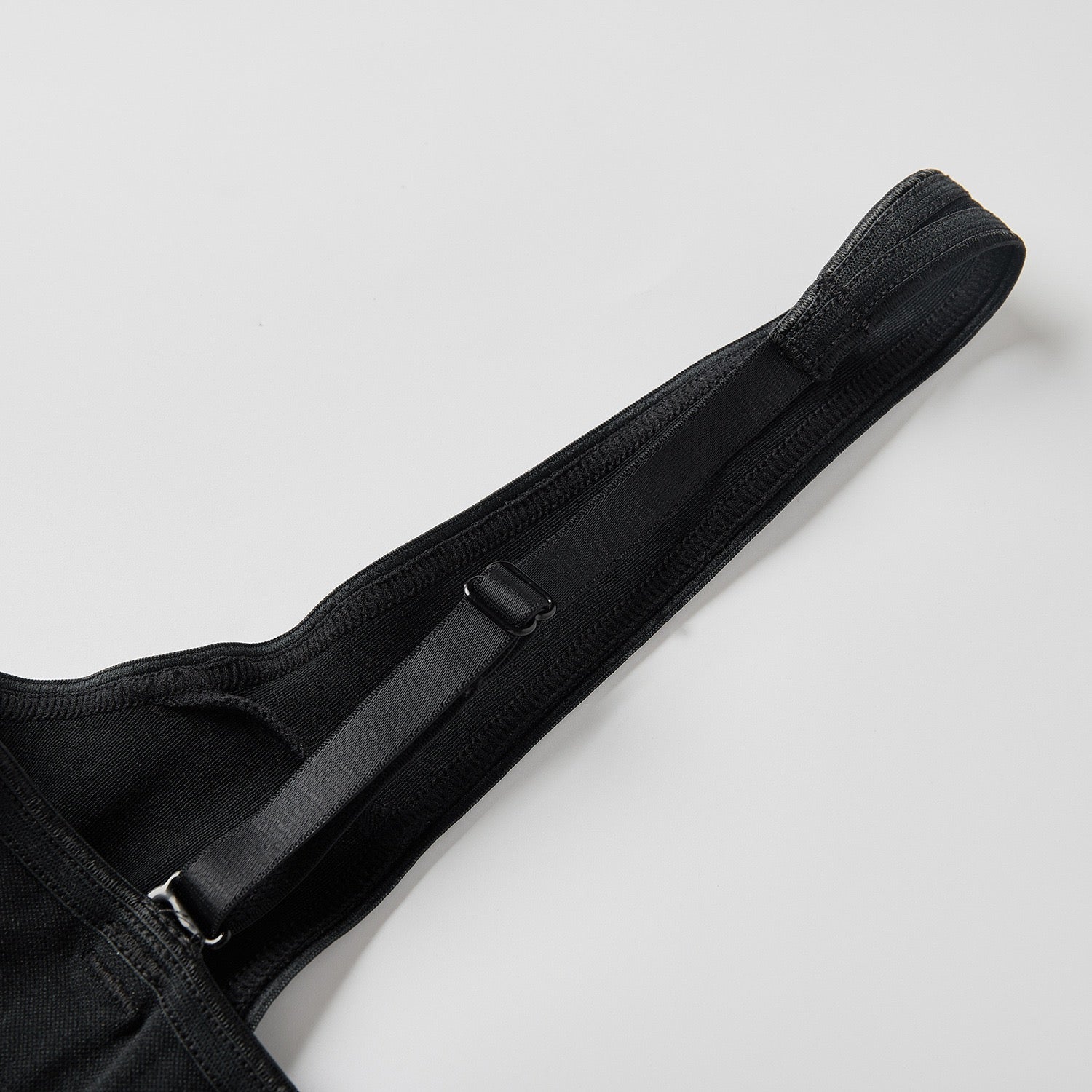 This braless bodysuit combines intelligent compression technology with thoughtful engineering to deliver a streamlined silhouette from mid-thigh upward for your clients.